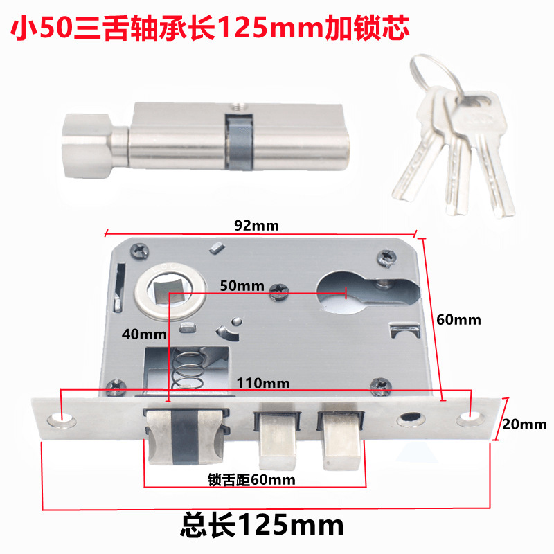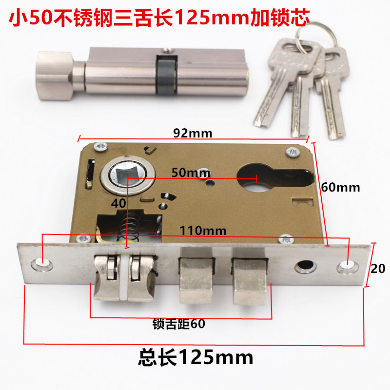 125 iron lock body - tongue distance 48+ lock core key | 125 stainless steel lock body - tongue distance 48+ lock core key [recommended for home] | 125 Brass tongue lock body - tongue distance 45+ lock core key | 125 Silent lock body - tongue distance 60+ lock core key | 125 Three-tongue bearing - tongue spacing 60+ lock key | 125 Mute Three tongues - Tongue distance 60+ lock key | 135 Brass tongue lock body - tongue distance 45+ lock core key | 138 Silent lock body - tongue distance 60+ lock core key | 145 Brass tongue lock body - tongue distance 45+ lock core key | 145 Stainless steel lock body - tongue distance 65+ lock core key | 145 Stainless steel lock body - tongue length 75+ lock core key | 148 Stainless steel lock body - tongue distance 75+ lock core key | 155 stainless steel lock body - tongue distance 80+ lock core key | 160 Mute lock body - tongue distance 88+ lock core key